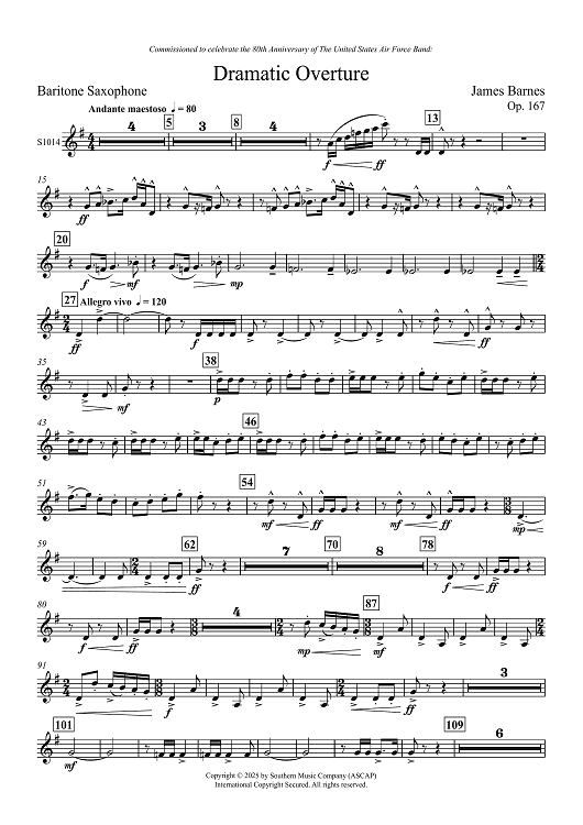 "Dramatic Overture - Baritone Saxophone" Sheet Music by James Barnes