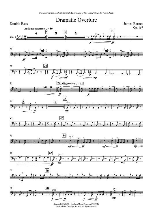 Digital Sheet Music for Dramatic Overture - Double Bass by James Barnes scored for Concert Band; id:508295
