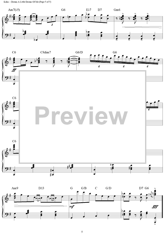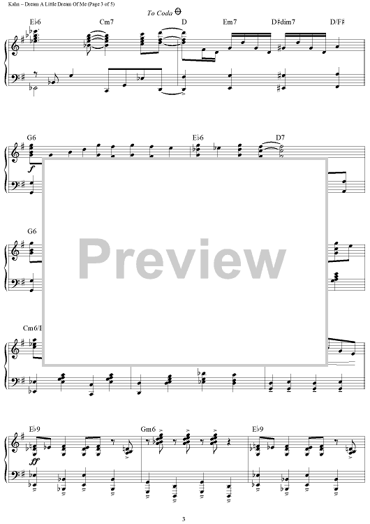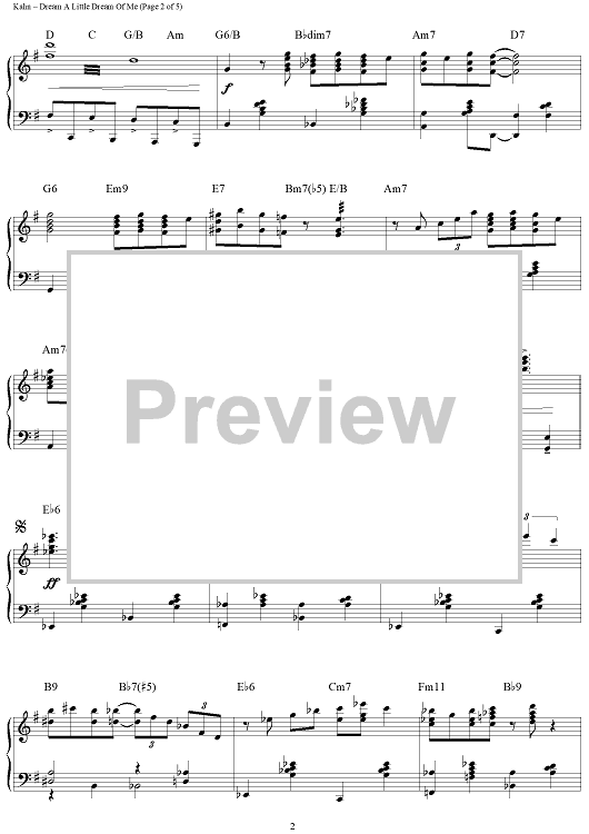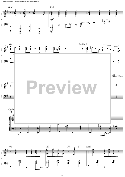 Digital Sheet Music for Dream A Little Dream Of Me by Gus Kahn, Wilbur Schwandt, Fabian Andree, Brent Edstrom scored for Piano Solo; id:458092