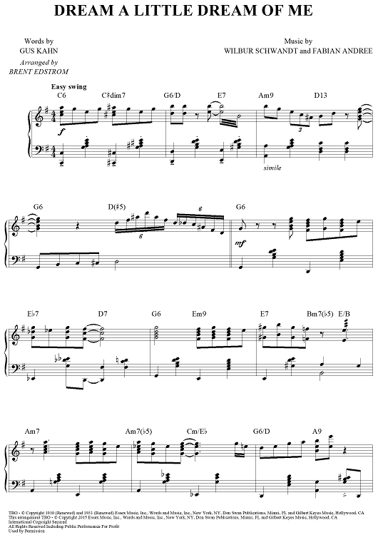 "Dream A Little Dream Of Me" Sheet Music by Wilbur Schwandt