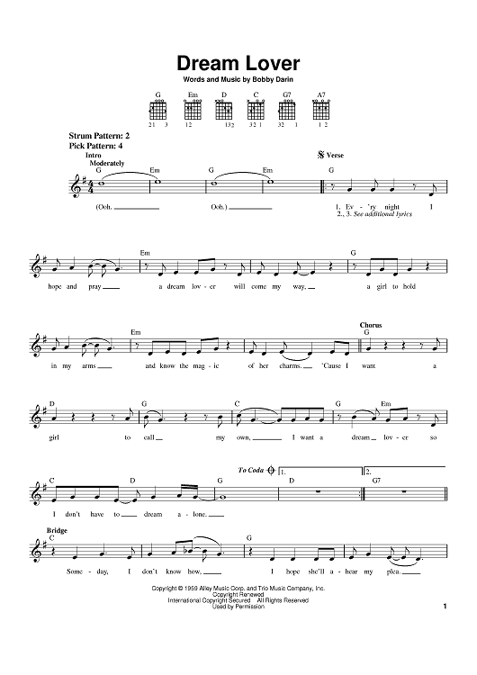 Digital Sheet Music for Dream Lover by Bobby Darin, The Manhattan Transfer scored for Easy Guitar; id:369499
