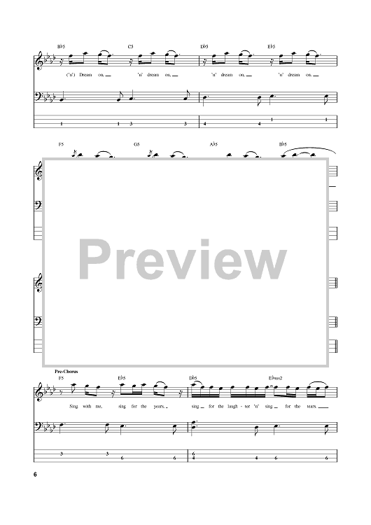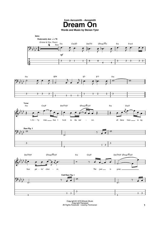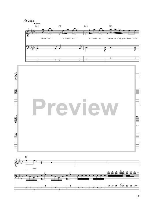 Digital Sheet Music for Dream On by Aerosmith, Steven Tyler scored for Bass Tab; id:381484