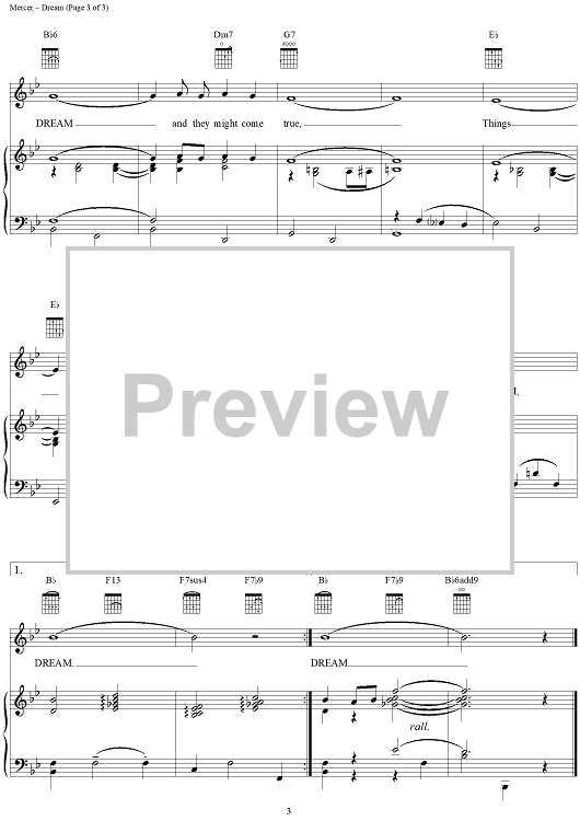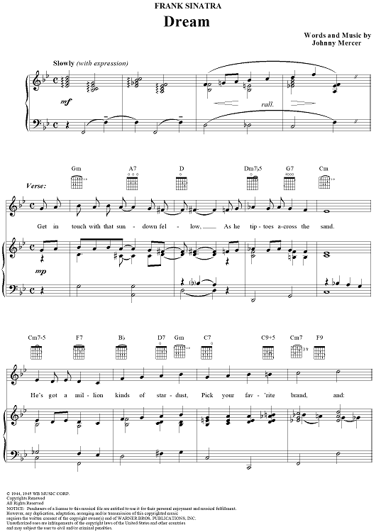Digital Sheet Music for Dream by Frank Sinatra, Johnny Mercer, Jimmy Dorsey, The Pied Pipers, Michael Buble scored for Piano/Vocal/Chords; id:112809