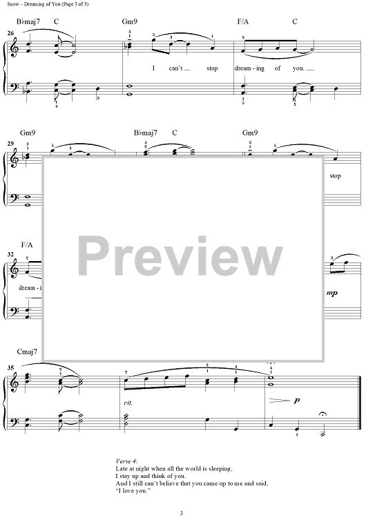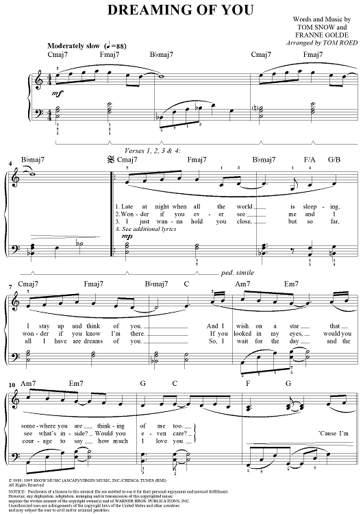 Digital Sheet Music for Dreaming of You by Tom Roed, Tom Snow, Franne Golde scored for Easy Piano/Vocal; id:317630