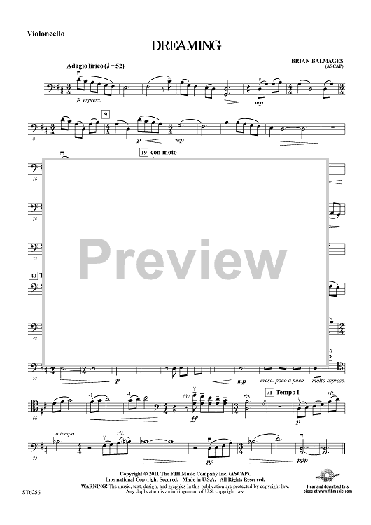Digital Sheet Music for Dreaming - Violoncello by Brian Balmages scored for String Orchestra; id:421849