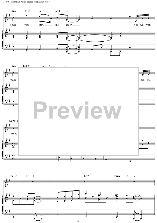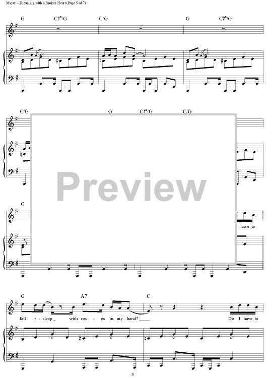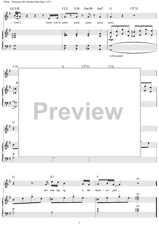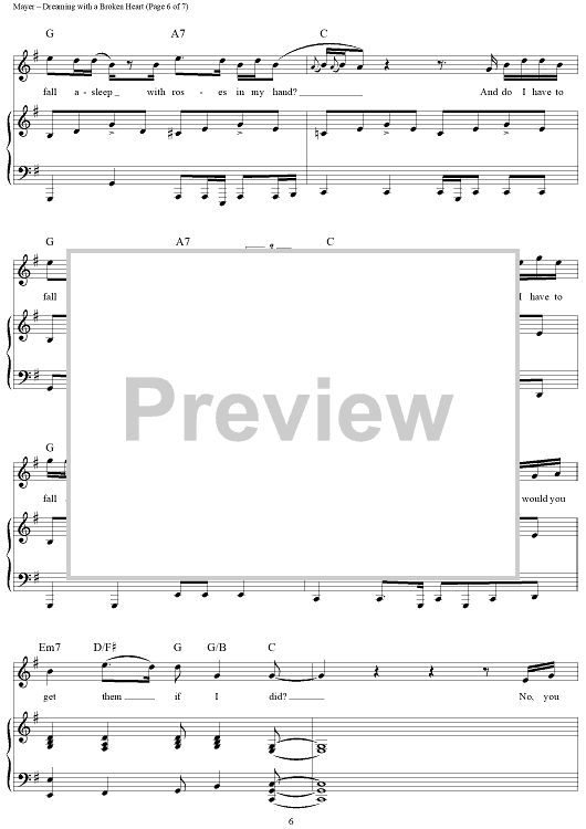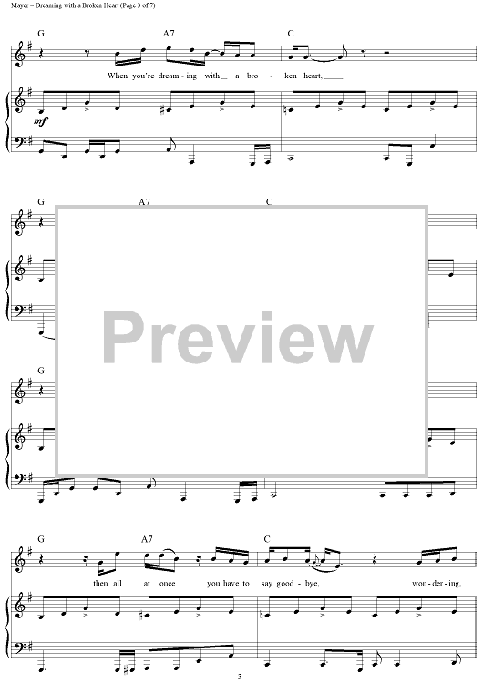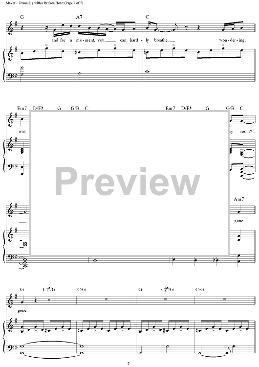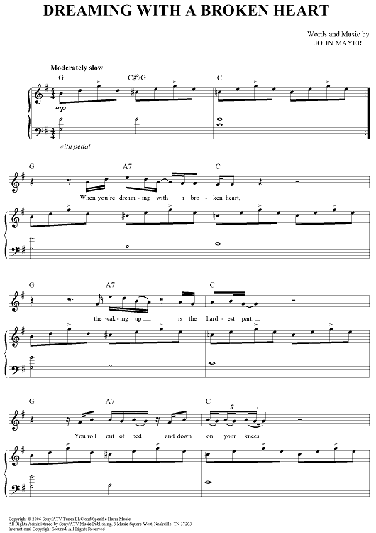 Digital Sheet Music for Dreaming with a Broken Heart by John Mayer scored for Piano/Vocal/Chords; id:366317