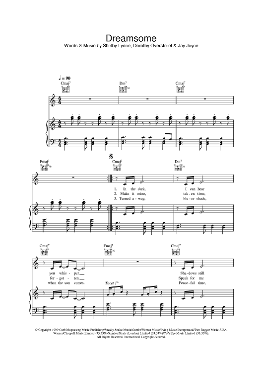 Digital Sheet Music for Dreamsome by Jay Joyce, Shelby Lynne, Dorothy Overstreet scored for Piano/Vocal/Chords; id:381266