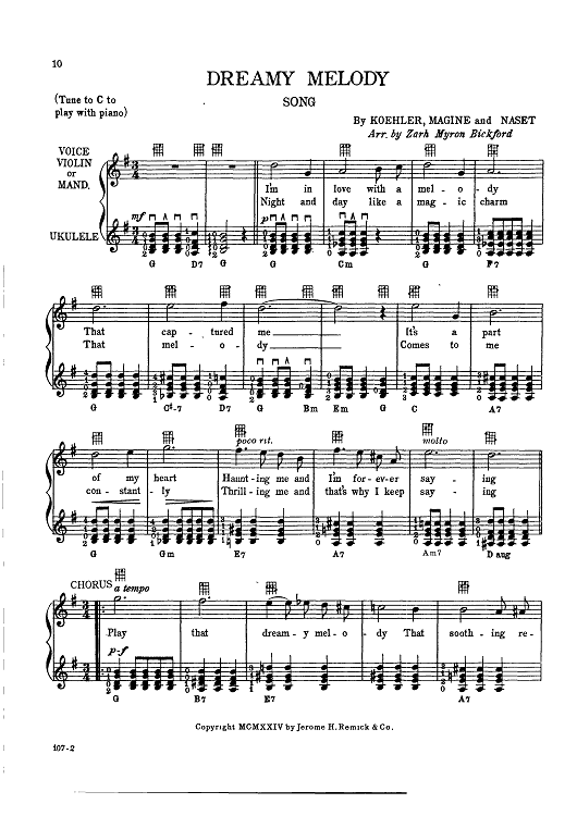 Digital Sheet Music for Dreamy Melody by , Ted Koehler, Frank Magine, Zarh Myron Bickford, C. Naset scored for Ukulele; id:418665