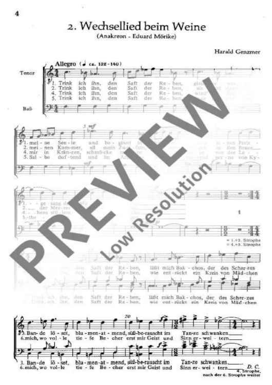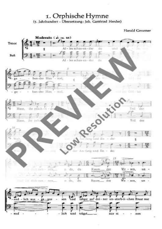 Digital Sheet Music for Drei antike Gesänge - Tenor / Bass by Harald Genzmer scored for Mixed Choir (satb) With 3 Trumpets And 2 Trombones Or Piano (4 Hands); id:479469