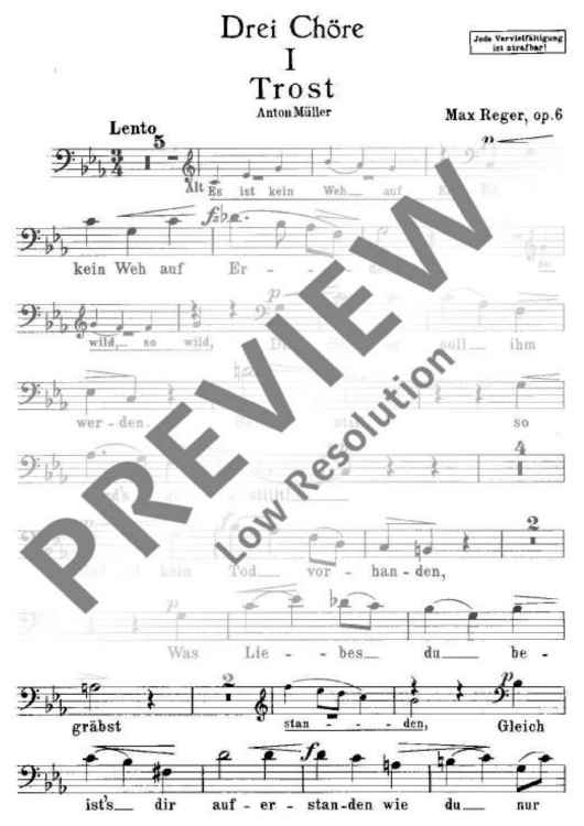 Digital Sheet Music for Drei Chöre - Bass by Max Reger scored for Mixed Choir (satb) And Piano; id:478892