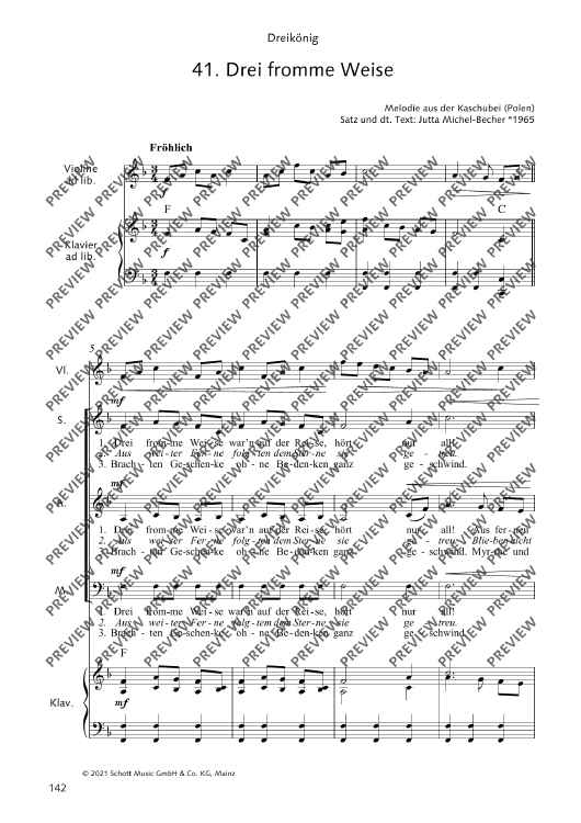 Digital Sheet Music for Drei fromme Weise - Score by Jutta Michel-Becher scored for Mixed Choir (sab) And Piano; id:496420