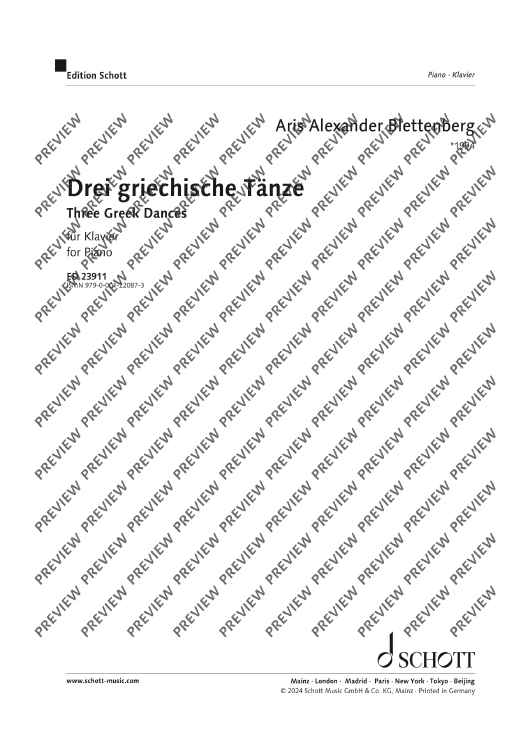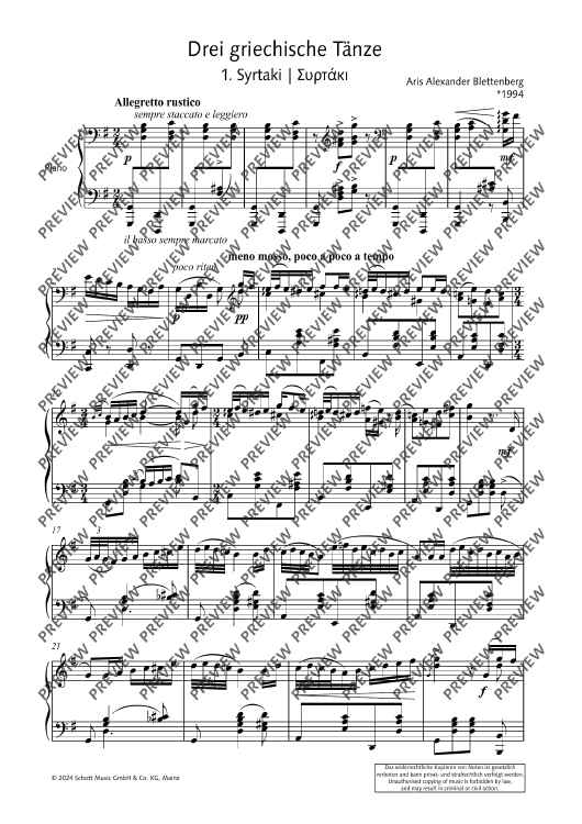 "Drei griechische Tänze" Sheet Music by Aris Alexander Blettenberg