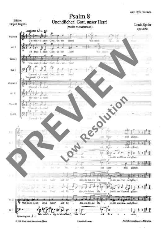 Digital Sheet Music for Drei Psalmen - Choral Score by Ludwig Spohr scored for Mixed Choir (satb/satb) With Soloists (satb); id:479532