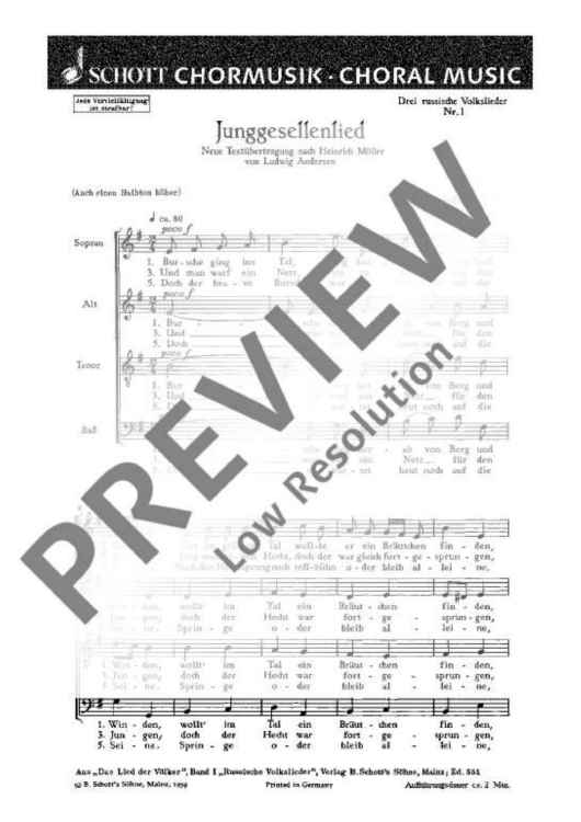 Digital Sheet Music for Drei russische Volkslieder - Choral Score by Friedrich Zipp scored for Mixed Choir (satb); id:479314