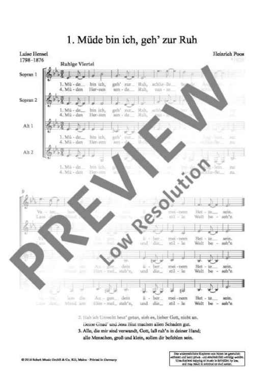 "Drei Schlaf- und Wiegenlieder - Choral Score" Sheet Music by Heinrich Poos