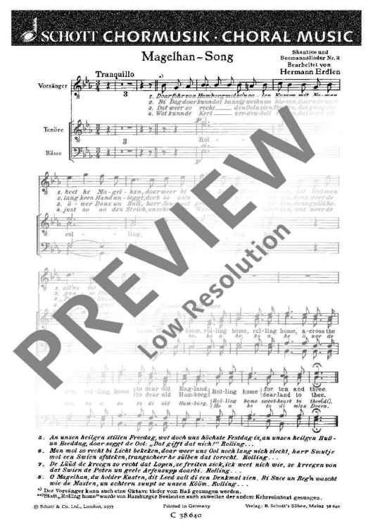 Digital Sheet Music for Drei Shanties und Seemannslieder - Choral Score by Hermann Erdlen scored for Men's Choir (ttbb); Accordion Ad Libitum; id:480032