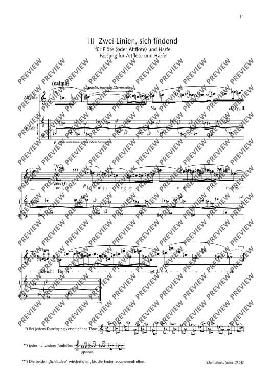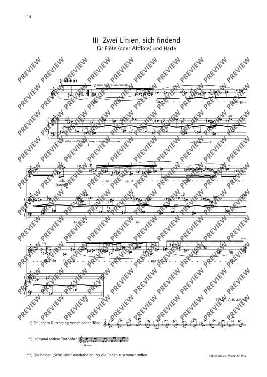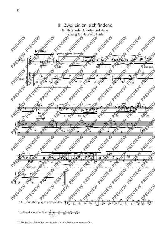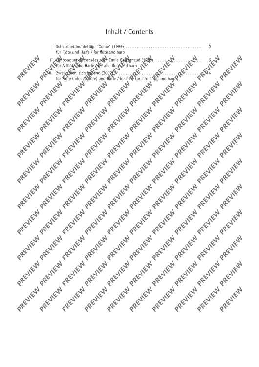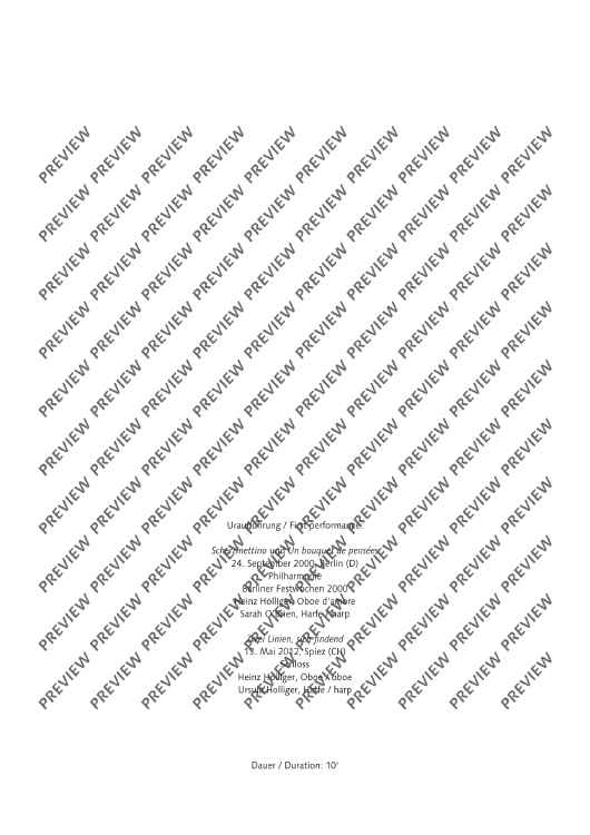 Heinz Holliger wrote a total of 10 pieces for oboe and harp for his wife Ursula Holliger and himself (Un bouquet de pensées, ED 9467). Three pieces, which are particularly suitable for the standard instrumentation of flute and harp, are published here in a separate edition.