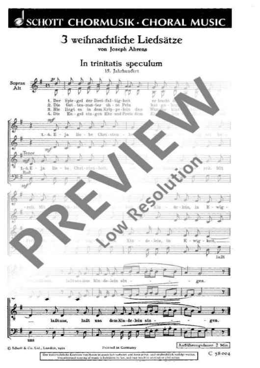 Digital Sheet Music for Drei weihnachtliche Liedsätze - Choral Score by Joseph Ahrens scored for Mixed Choir (satb); id:471588