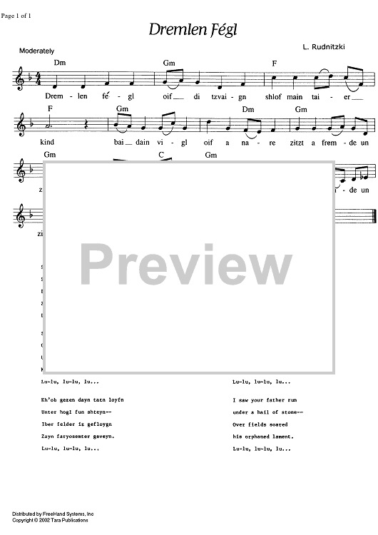 Digital Sheet Music for Dremlen Fégl - Score by Velvel Pasternak, L. Rudnitzki scored for Any Klezmer instrumentation; id:348566