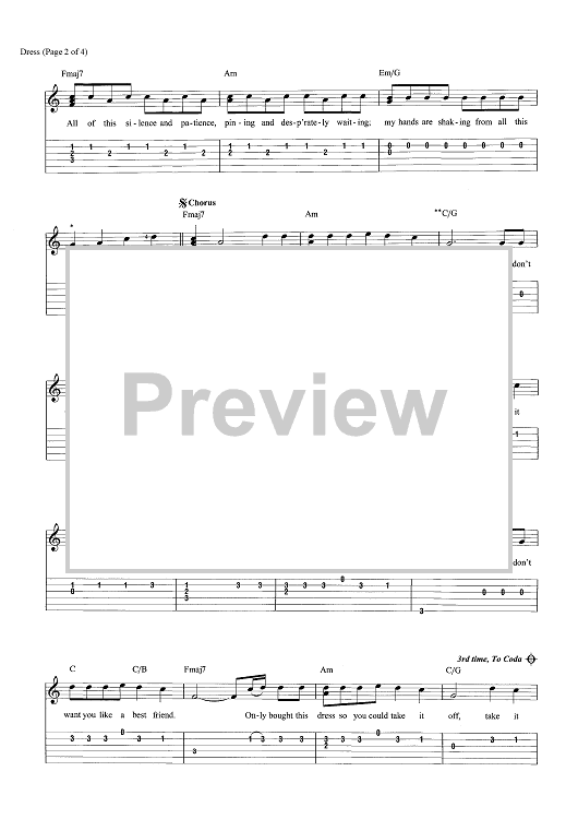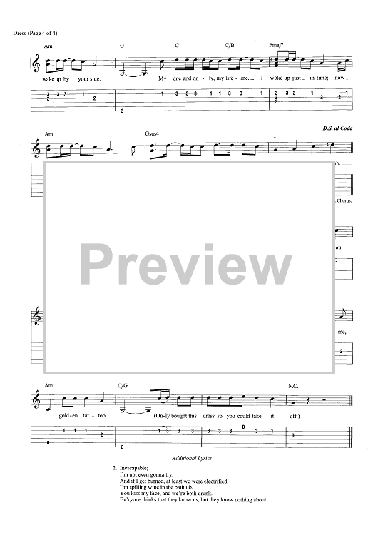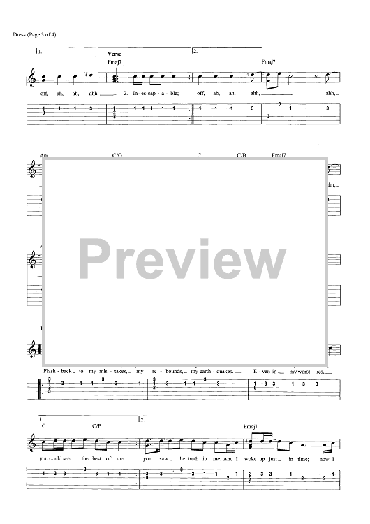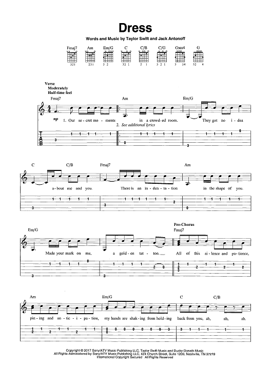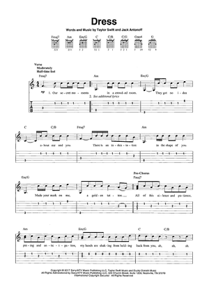 Digital Sheet Music for Dress by Taylor Swift, Jack Antonoff scored for Easy Guitar Tab/Vocal; id:466097