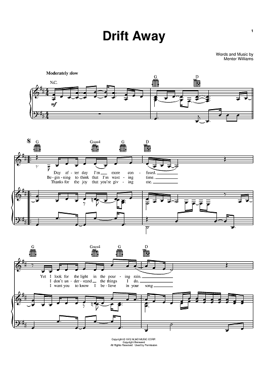 Digital Sheet Music for Drift Away by Linda Eder, Mentor Williams, Uncle Kracker, Dobie Gray scored for Piano/Vocal/Chords; id:371884