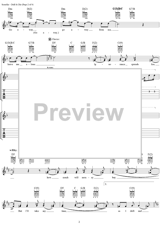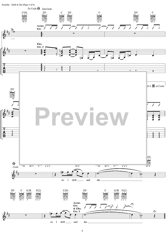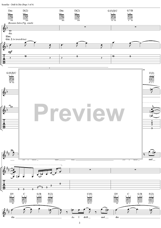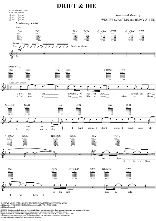 Digital Sheet Music for Drift & Die by Puddle Of Mudd, Wesley Scantlin, Jimmy Allen scored for Guitar Tab/Vocal; id:288855