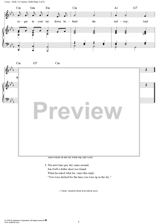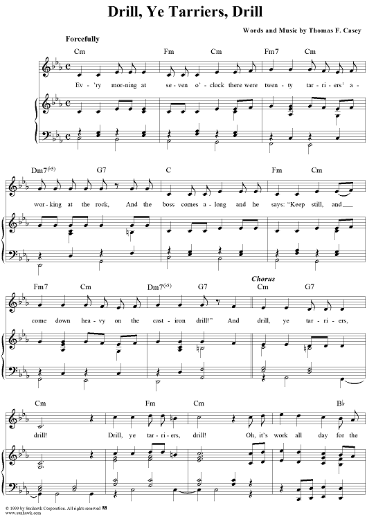 Digital Sheet Music for Drill, Ye Tarriers, Drill by Thomas F. Casey scored for Piano/Vocal/Chords; id:113744