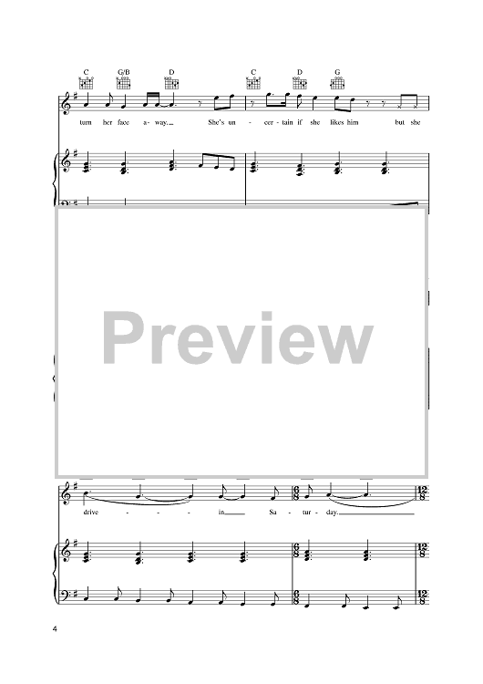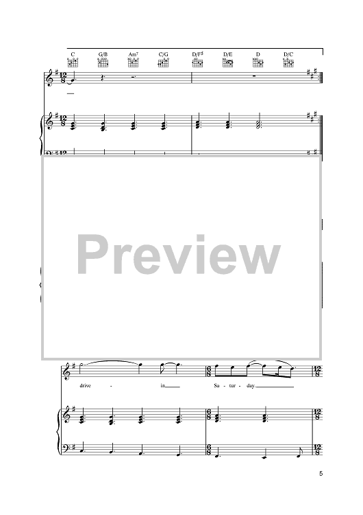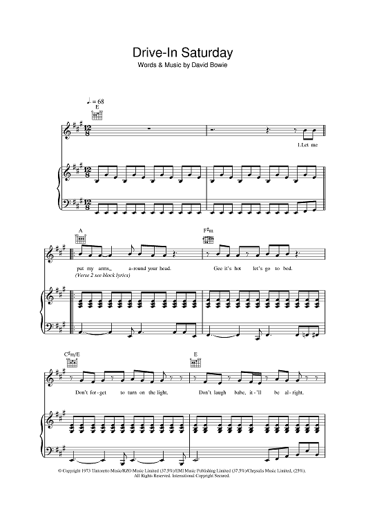 Digital Sheet Music for Drive-In Saturday by David Bowie scored for Piano/Vocal/Chords; id:401266