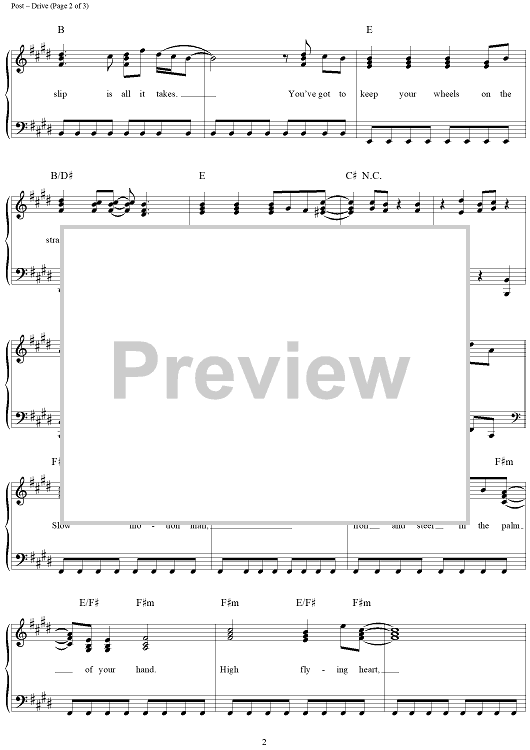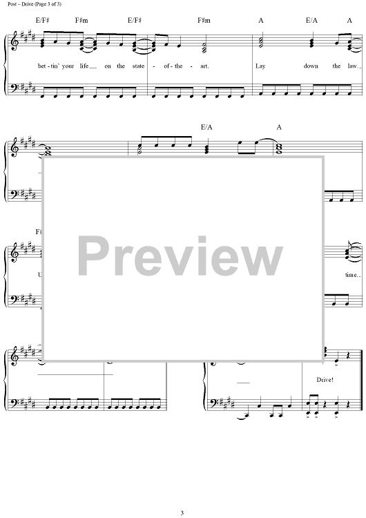 Digital Sheet Music for Drive by Mike Post, Stephen Geyer scored for Piano/Vocal/Chords; id:254945