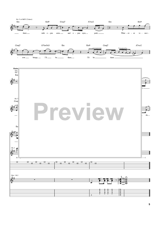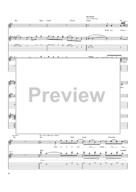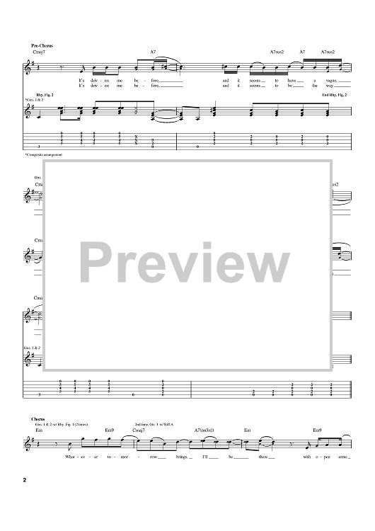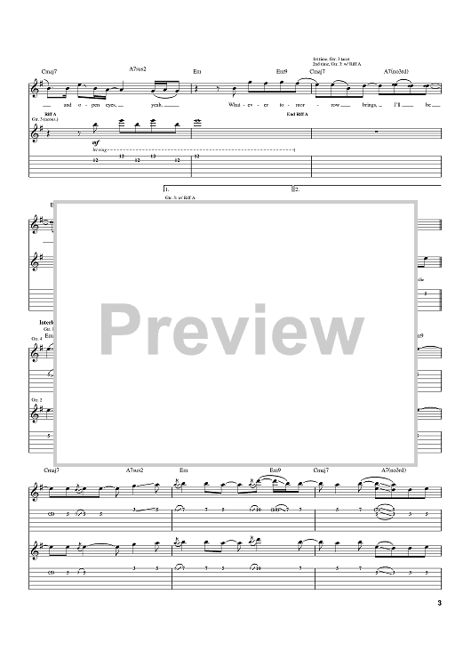 Digital Sheet Music for Drive by Brandon Boyd, Mike Einziger, Incubus, Alex Katunich scored for Guitar Tab; id:367877
