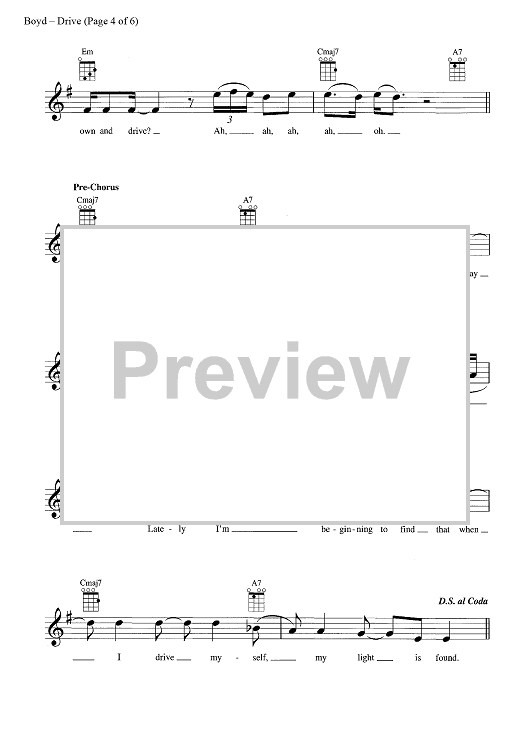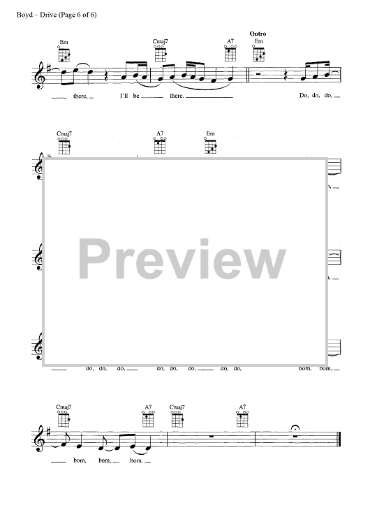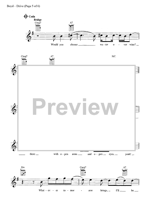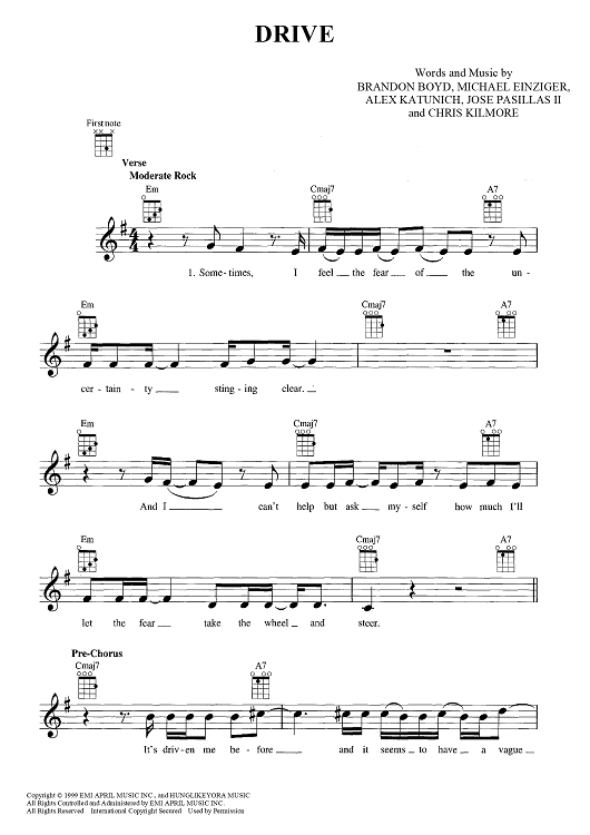 Digital Sheet Music for Drive by Brandon Boyd, Mike Einziger, Incubus, Alex Katunich, Chris Kilmore, José Antonio Pasillas II scored for Ukulele/Vocal; id:444483