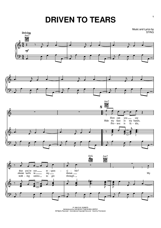 Digital Sheet Music for Driven To Tears by Sting, The Police scored for Piano/Vocal/Chords; id:398610