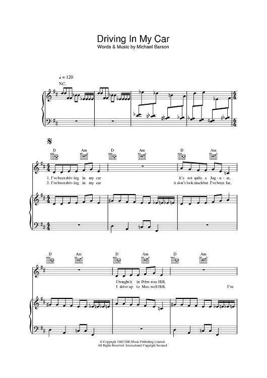 Digital Sheet Music for Driving In My Car by Mike Barson, Madness scored for Piano/Vocal/Chords; id:401420