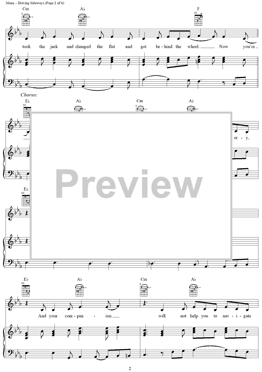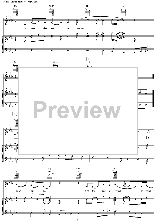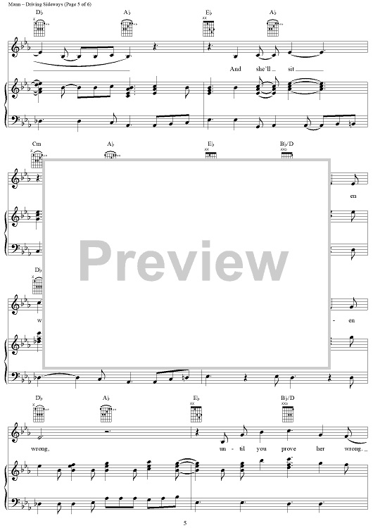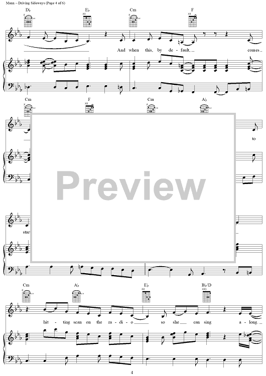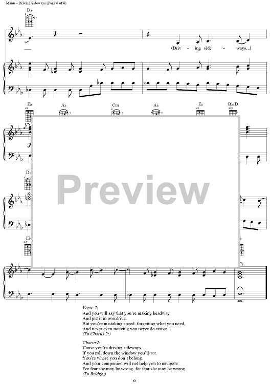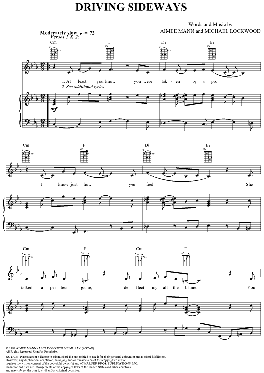 Digital Sheet Music for Driving Sideways by Aimee Mann, Michael Lockwood scored for Piano/Vocal/Chords; id:235689