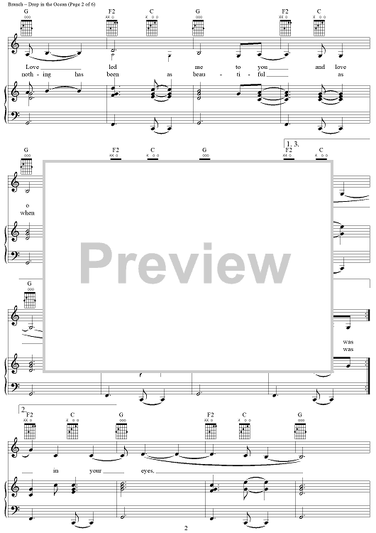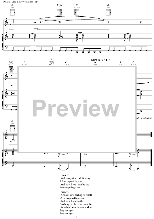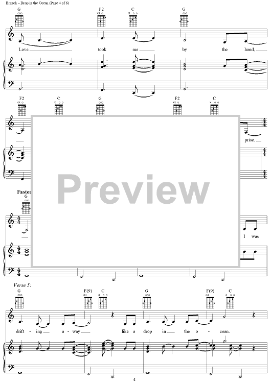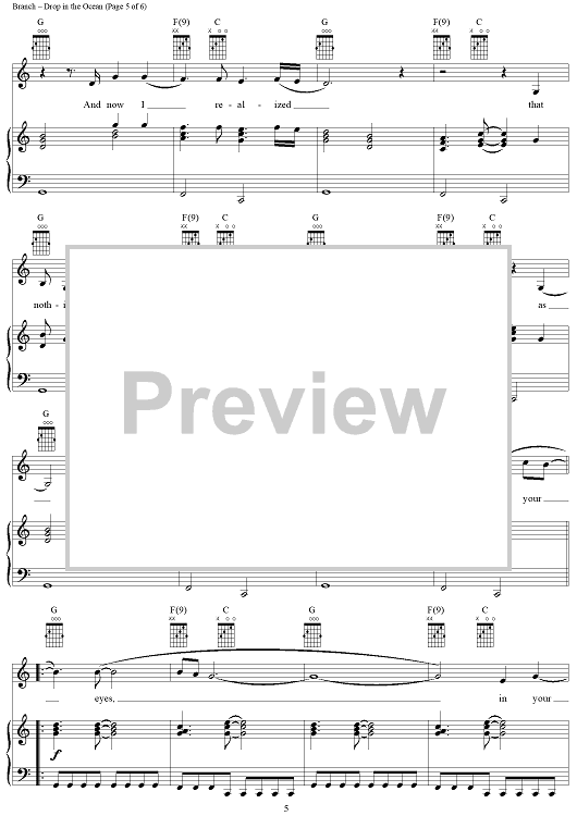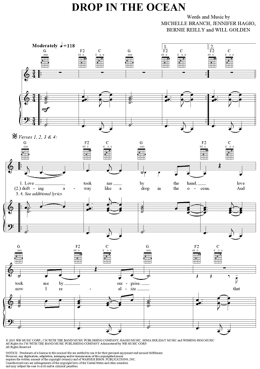 Digital Sheet Music for Drop in the Ocean by Michelle Branch, Jennifer Hagio, Bernie Reilly, Will Golden scored for Piano/Vocal/Chords; id:305261