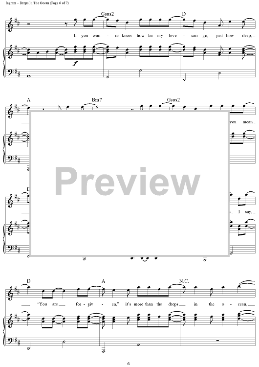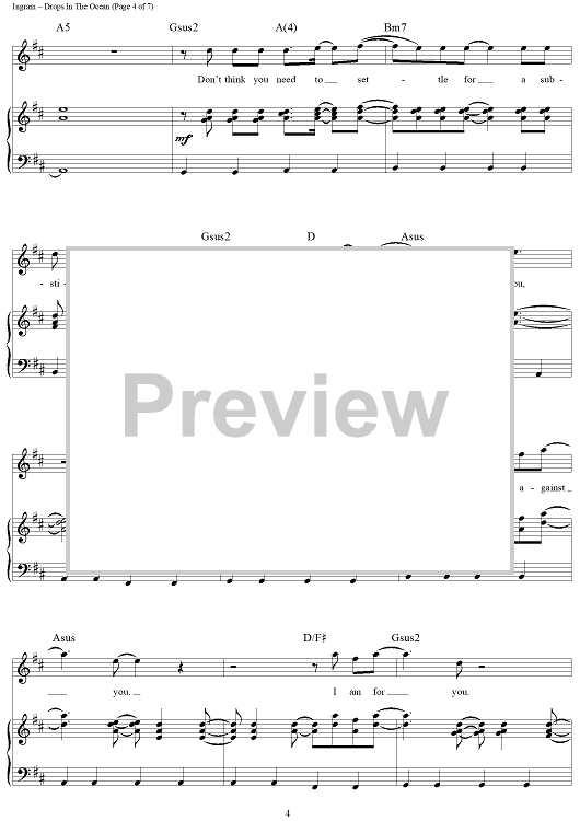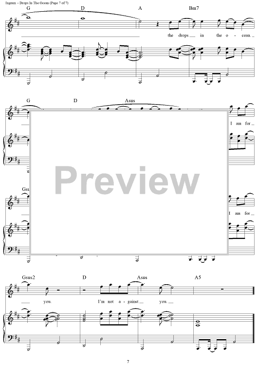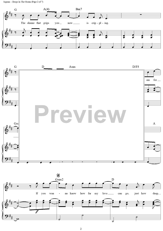 Digital Sheet Music for Drops in the Ocean by Matt Bronleewe, Hawk Nelson, Jason Ingram, Jon Steingard scored for Piano/Vocal/Chords; id:451797