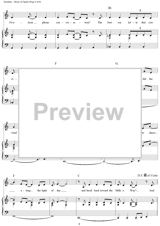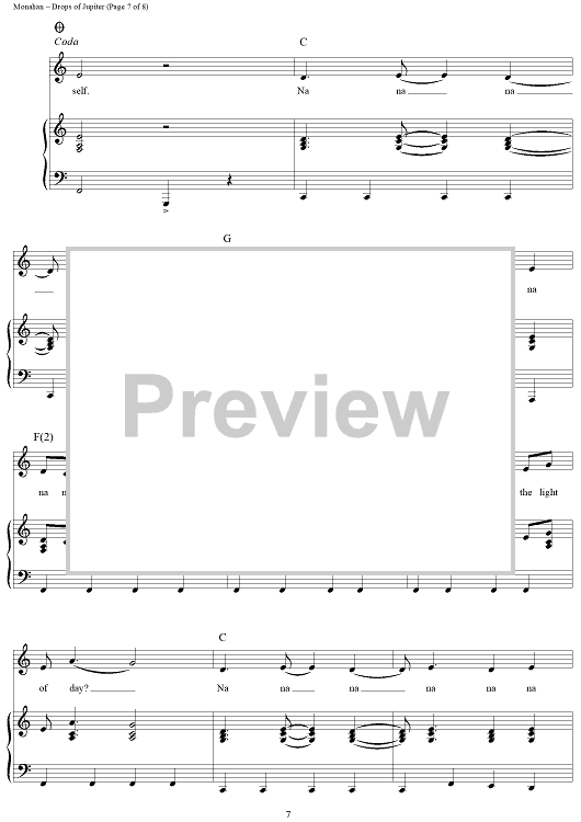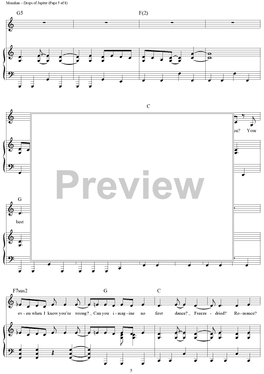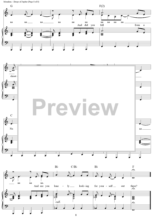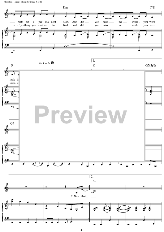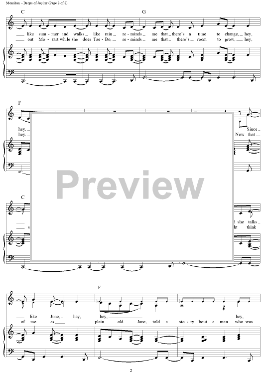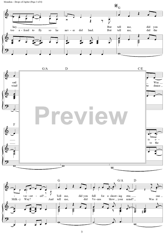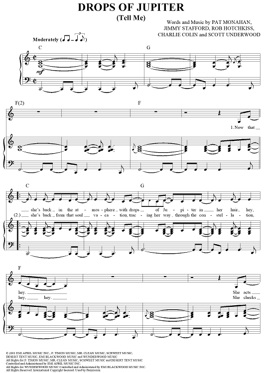 Digital Sheet Music for Drops of Jupiter (Tell Me) by Scott Underwood, Pat Monahan, Jimmy Stafford, Rob Hotchkiss, Train, Charlie Colin scored for Piano/Vocal/Chords; id:362993