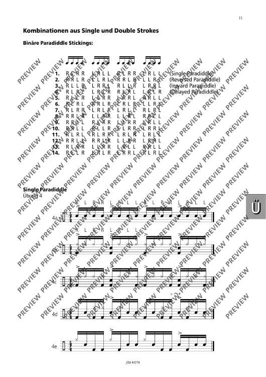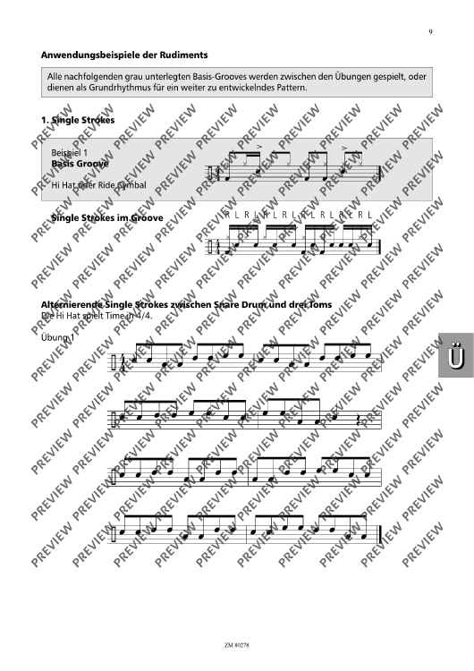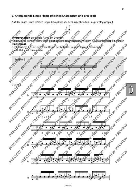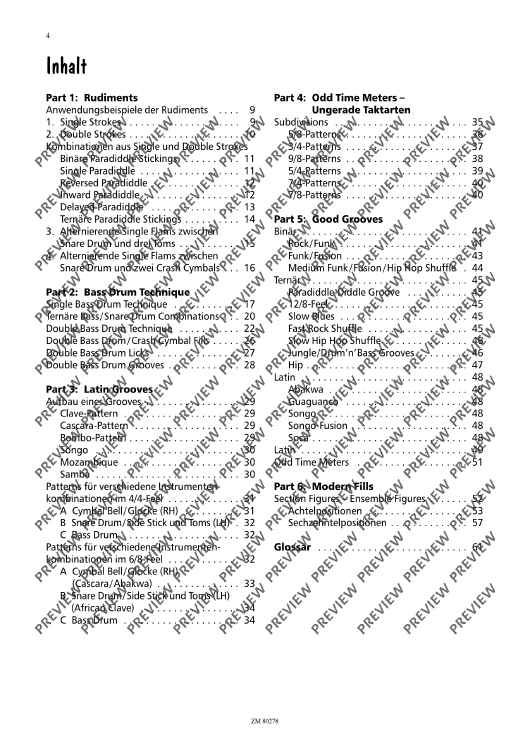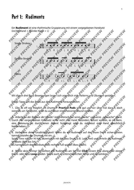 Der Band 3 ist eine Zusammenstellung aktueller und bewährter Drum-Techniken und neuer Ideen, um das Schlagzeugspiel bunter und spannender zu gestalten. Er bietet moderne und bewährte Grooves, Fills und Licks - grundlegende Information über die Rudiments und deren musikalische Umsetzung am Drumset - Technik-Übungen und praktische Beispiele, um das Spiel mit dem Single- und Double-Pedal zu trainieren - kreative Anregungen zur musikalischen Gestaltung von Fill-Ins in Pop, Rock und Jazz - Rhythmen im Latin Style und eine umfassende Sammlung von Patterns in ungeraden Taktarten. Sowohl Einsteiger als auch fortgeschrittene Spieler können diesen Band zur Vervollständigung des eigenen Repertoires nutzen. Für diejenigen, die dieses Buch im Selbststudium verwenden möchten, sind in vielen Kapiteln immer wieder beispielhaft methodische Anleitungen zum sinnvollen Umgang mit den Übungen aufgezeigt.