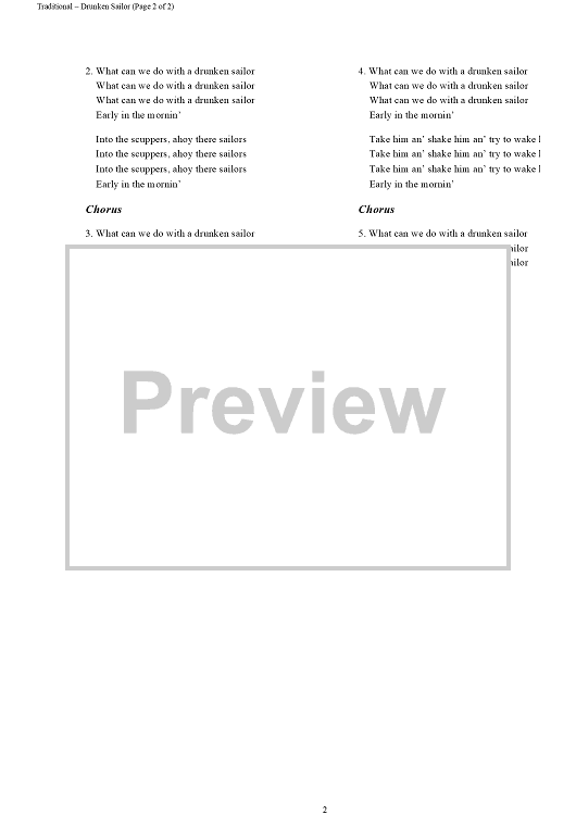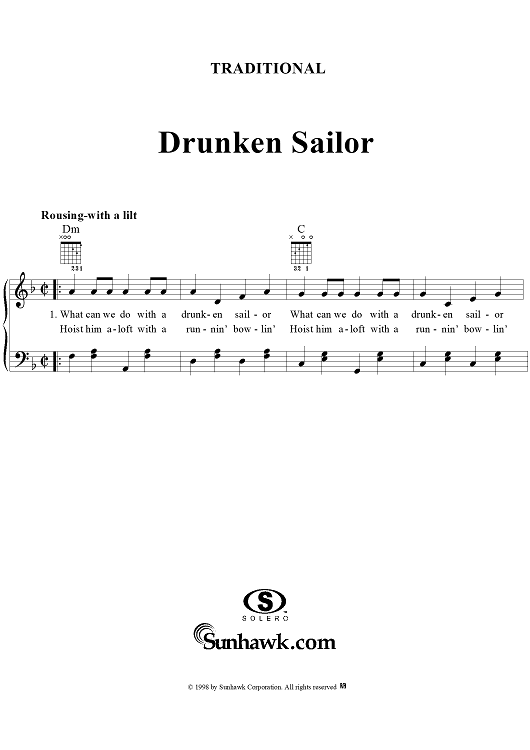 Digital Sheet Music for Drunken Sailor by Traditional scored for Piano/Vocal; id:113745