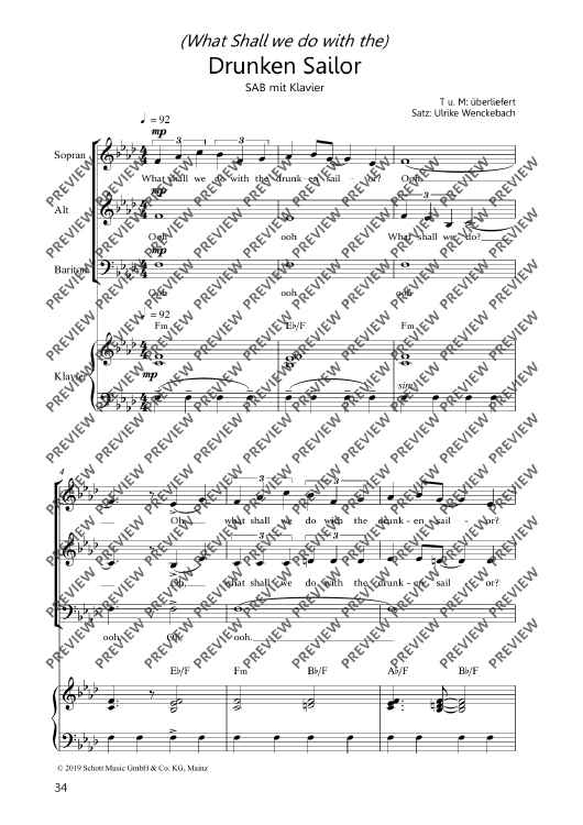 Digital Sheet Music for Drunken Sailor by Ulrike Wenckebach scored for Mixed Choir (sab) And Piano; id:499159