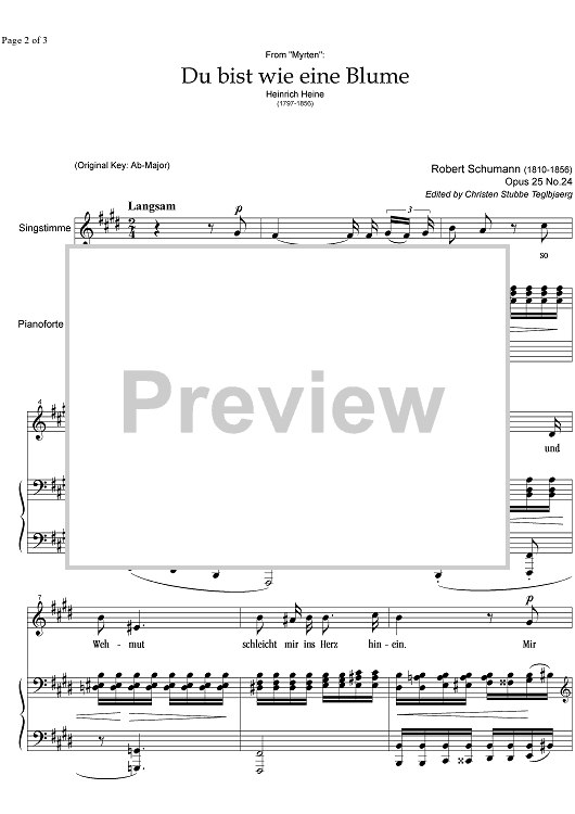 Digital Sheet Music for Du bist wie eine Blume Op.25 No.24 by , Robert Schumann scored for Alto or Bass/Piano; id:332714
