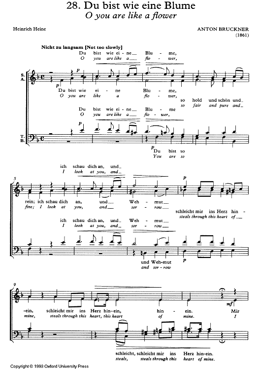 "Du bist wie eine Blume" Sheet Music by Anton Bruckner