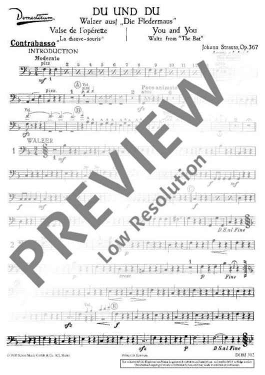 "Du und Du - Double Bass" Sheet Music by Johann Strauß (Son)
