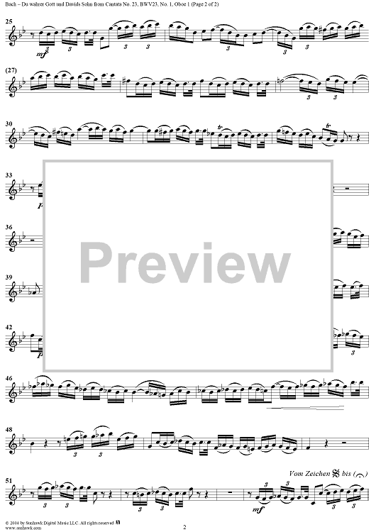 ""Du wahrer Gott und Davids Sohn", Duet, No. 1 from Cantata No. 23: "Du wahrer Gott und Davids Sohn" - Oboe 1" Sheet Music by Johann Sebastian Bach