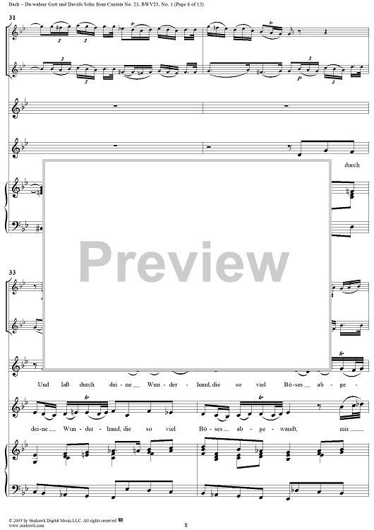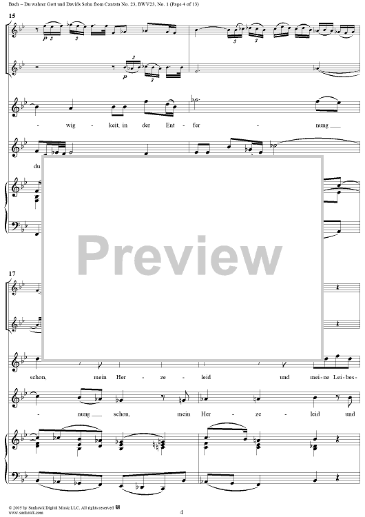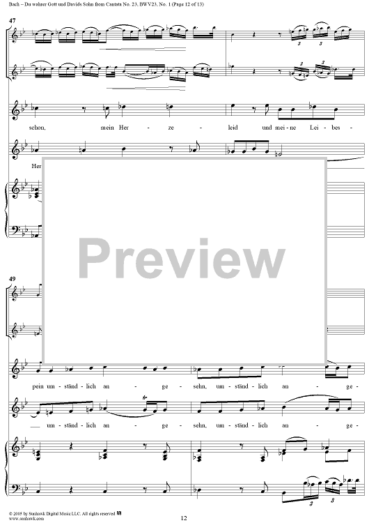 Digital Sheet Music for "Du wahrer Gott und Davids Sohn", Duet, No. 1 from Cantata No. 23: "Du wahrer Gott und Davids Sohn" - Piano Score by Johann Sebastian Bach scored for Soprano, Alto, Two Oboes and Piano or Organ; id:304192