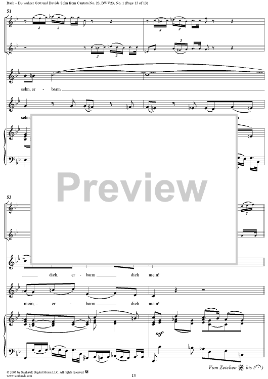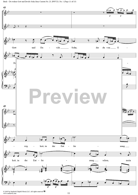 ""Du wahrer Gott und Davids Sohn", Duet, No. 1 from Cantata No. 23: "Du wahrer Gott und Davids Sohn" - Piano Score" Sheet Music by Johann Sebastian Bach