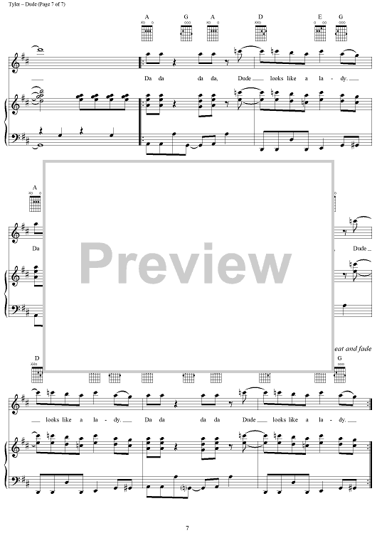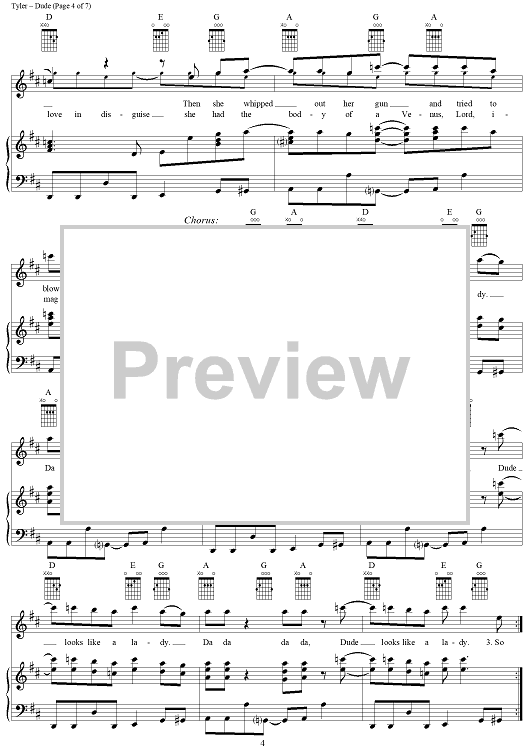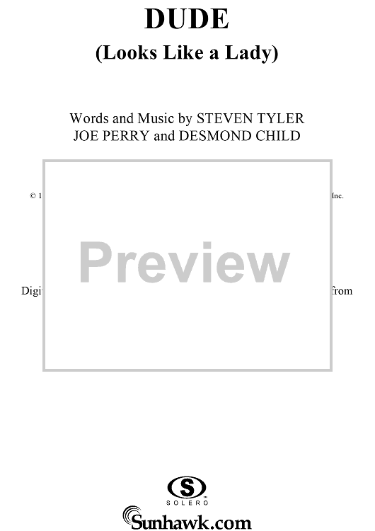Digital Sheet Music for Dude (Looks Like a Lady) by Aerosmith, Desmond Child, Steven Tyler, Joe Perry scored for Piano/Vocal/Chords; id:286773