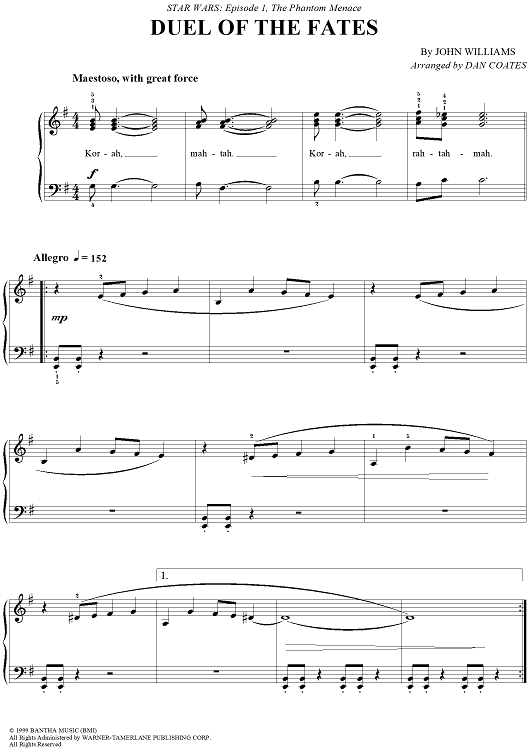 Digital Sheet Music for Duel of the Fates by Dan Coates, John Williams scored for Easy Piano; id:234781