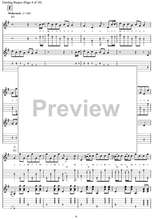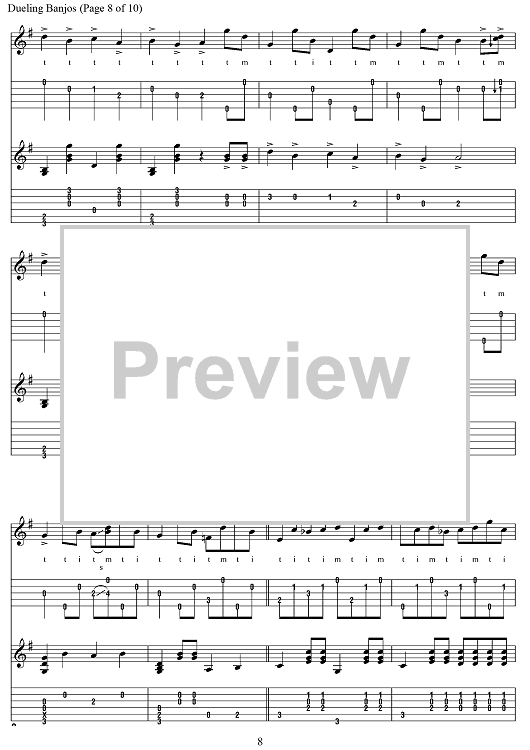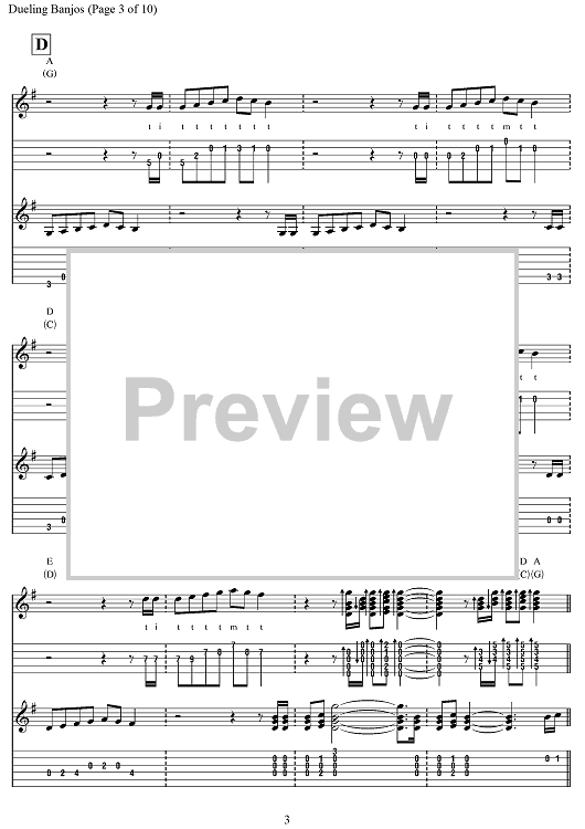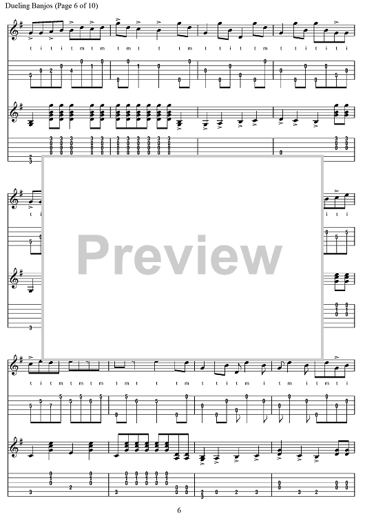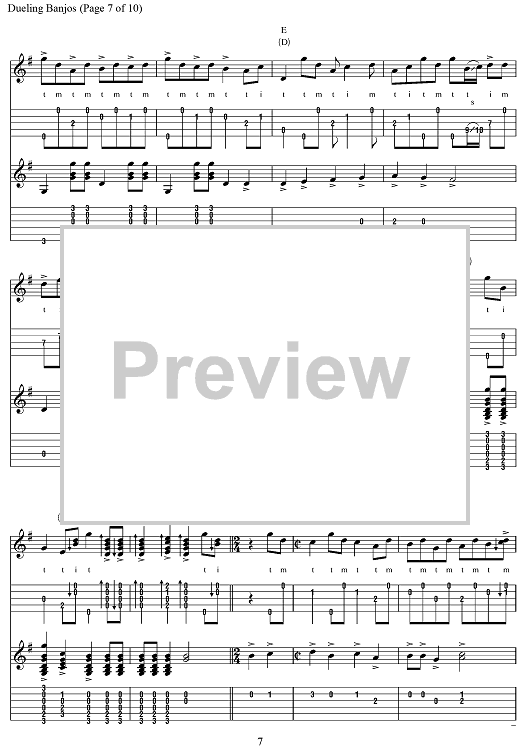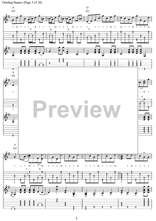 Digital Sheet Music for Duelling Banjos by Arthur Smith scored for Banjo/Guitar Tab; id:442892