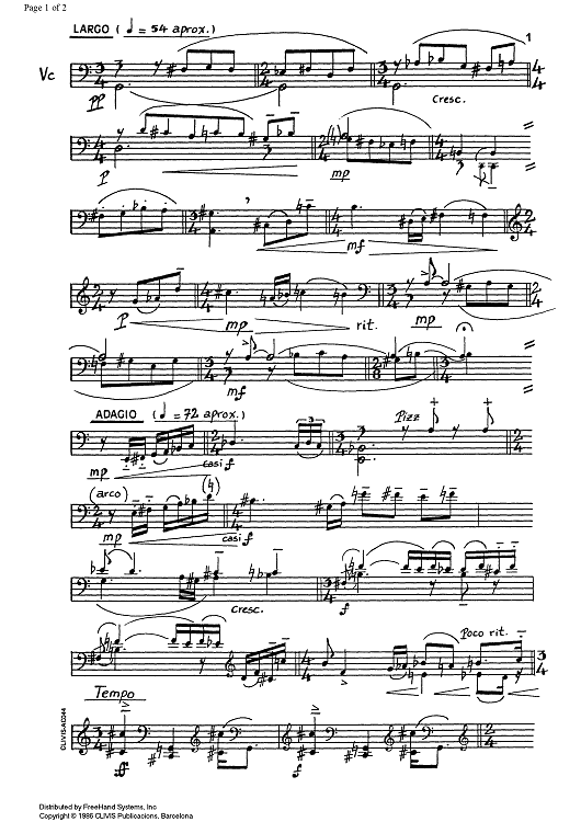 Digital Sheet Music for Dues pàgines by , Josep Lluís Guzman i Antich scored for Cello; id:337790